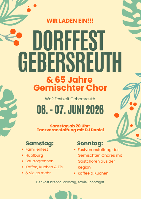 Wir feiern dieses Jahr auch das 65-jährige Bestehen des gemischten Chores aus Gebersreuth!